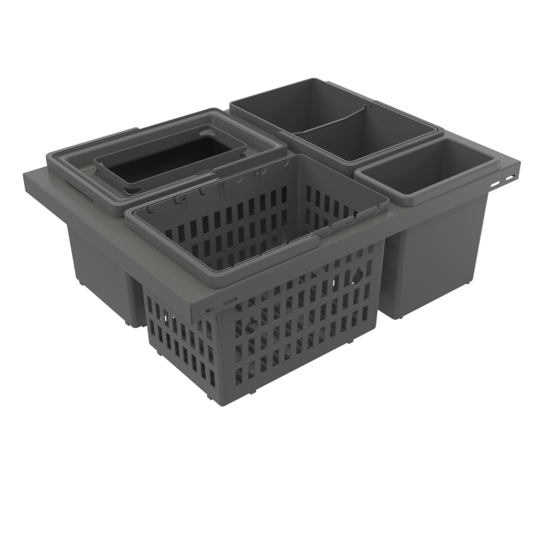 CUBE BASIC LOW 600 ECO fits drawers with a width of 600 mm and a depth of 450 mm. CUBE BASIC LOW ECO is a new and smart waste solution system that also fits in low drawers. It therefore also fits well in drawers next to the sink cabinet. The waste system has plenty of extra containers and is available in three different models. Comes equipped with our vented food waste bin, HERO. Now in 8L size to fit these low waste solutions. Both frame and bins are made in recycled PET.
