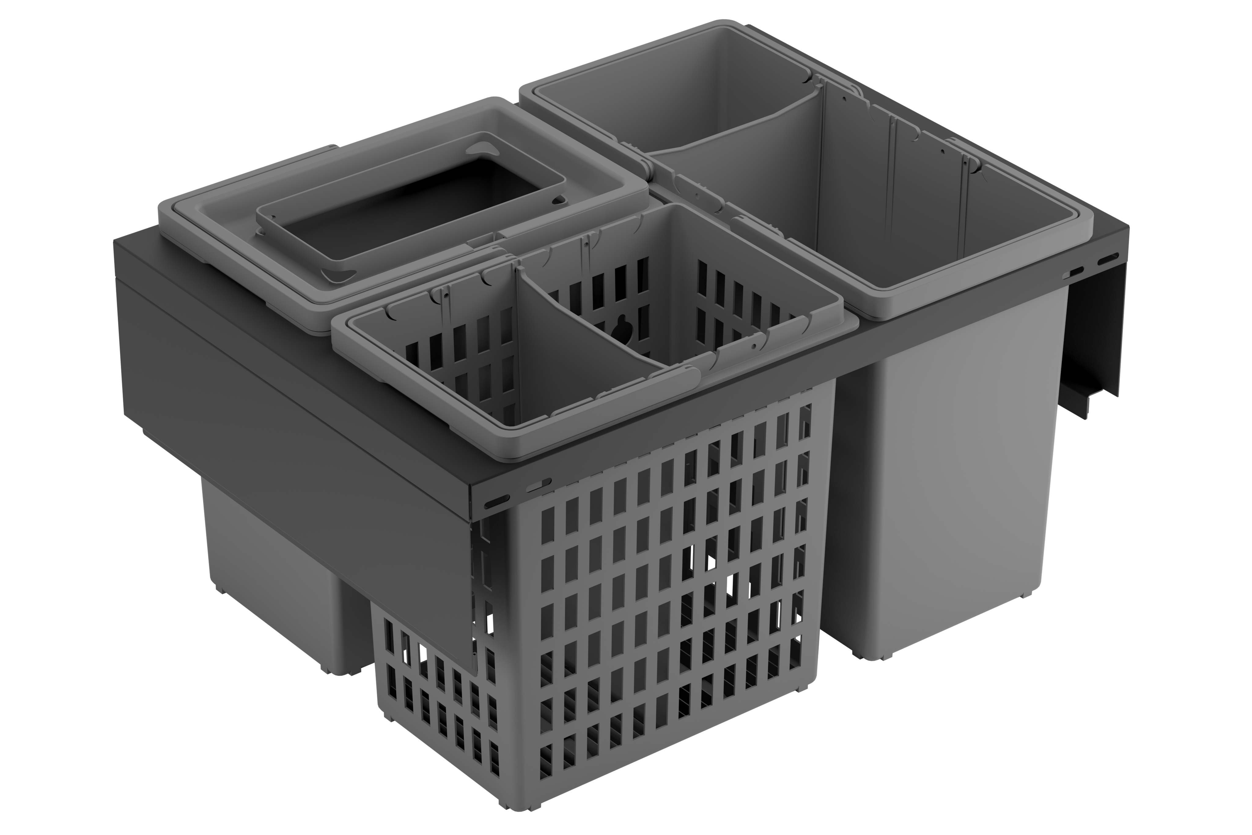 TREND 600 ECO fits drawers that have a width of 600 mm and a depth of 450 mm. It is mounted on the sides of the drawer and fits drawers with low sides. It is delivered including our unique food waste bin HERO. TREND is a flexible product series for modern kitchens where your waste solution blends in with the design of the drawer.