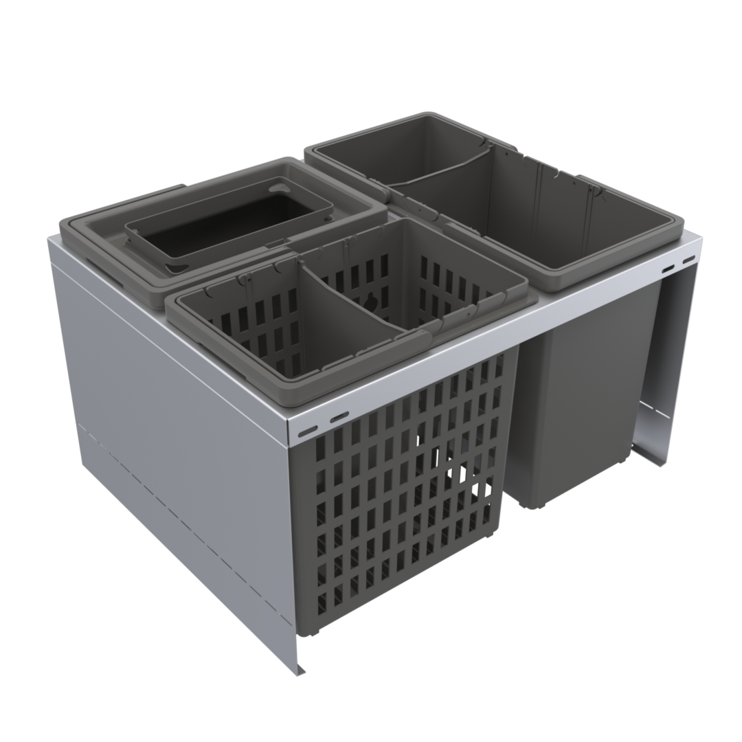 CUBE 600 ECO passar lådor som har 600 mm bredd och 450 mm djup. Den monteras på botten av lådan och passar alla lådtyper med såväl raka som svängda lådsidor. CUBE har heltäckande sidor av plåt vilket gör att den kan dela av en större låda. Den levereras inklusive vår unika matavfallshink HERO. Den är lätt att hålla ren och innehåller vårt moderna sortiment av hinkar tillverkade av återvunnen PET.